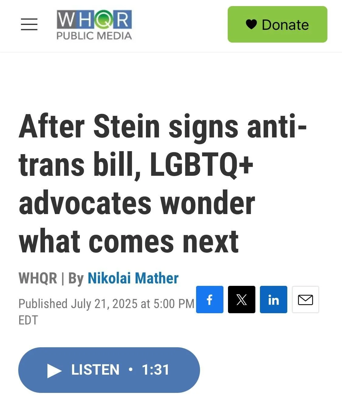 After Stein signs anti-trans bill, LGBTQ+ advocates wonder what comes next